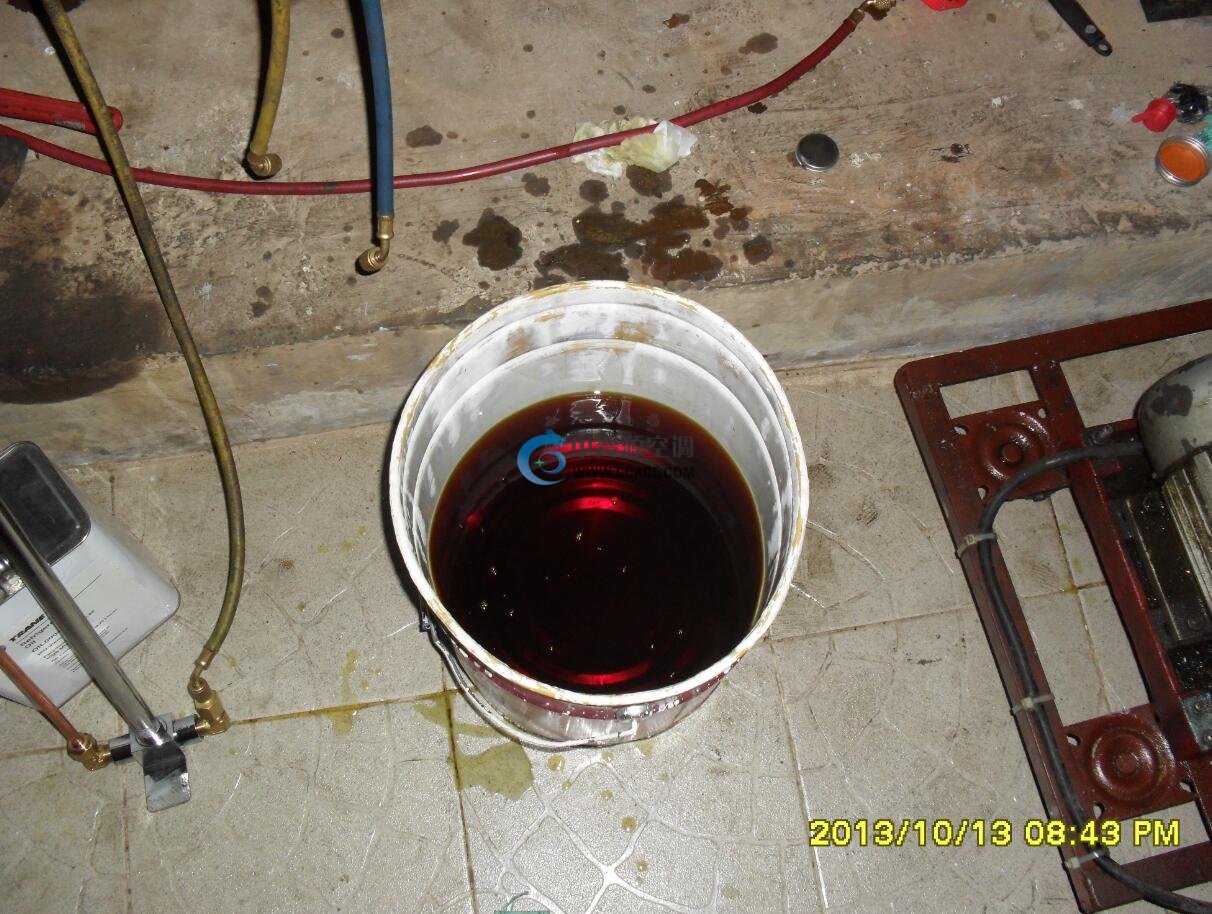 3)、由于空調(diào)外界工作環(huán)境的影響,機(jī)組經(jīng)常在較惡劣的環(huán)境下工作,就會造成壓縮機(jī)油的碳化和乳化,從而使系統(tǒng)積碳、腐蝕、堵塞、潤滑性能下降,使整機(jī)性能降低甚至影響到機(jī)組的使用壽命